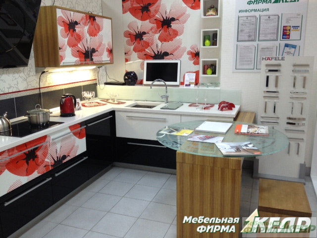В комплект входит: — столешница искусственный камень Гетакор (Германия), — мойки Тека подстольного монтажа (Германия) 2 шт., — разделочная доска к мойкам, — фасады глянцевые МДФ, — подъемники Авентос, — сетки под мойкой, 2 шт. — выкатные ящики с доводчиками Blum (Австрия), 6 шт., — барная стойка из шпона.