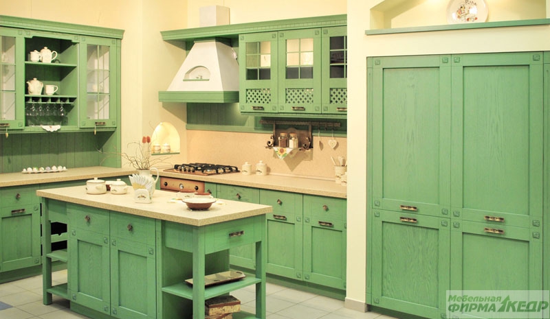 Кухня «Кантри» — удачная находка для ценителей старины и неповторимого интерьера. Эта модель подарит ощущение комфорта и покоя. Рамка: плита МДФ толщиной 19мм, облицованная шпоном дуба. Центральная часть: ХДФ толщиной 3мм, облицованная шпоном дуба. Отделка: тонирование, патинирование, матовое лакирование. Декоративные элементы: массив дуба.