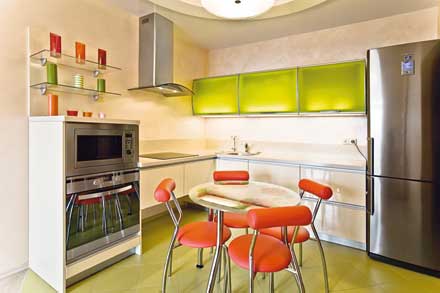 Индивидуальный проект по вашим размерам. · кухонные гарнитуры · мебель для гостиных · мебель для спальни · детские комнаты · шкафы-купе · гардеробные комнаты Весь комплекс услуг по проектированию и установке, включая уборку помещения. Точность, аккуратность, гарантия качества, соблюдение сроков выполнения работ. «Зеленый остров» Яркая, стильная, эргономичная и функциональная кухня станет украшением дома и удовлетворит всем требованиям современной хозяйки. Особенность проекта: облегченная тумба под варочной панелью-подвесная, гнутые фасады из метакрила с подсветкой. Фасады: лакированный МДФ. Наполнение: Blum (Австрия). Столешница: Искусственный камень.