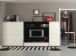 Корпус выполнен в декоре «Арабика». Накладные глянцевые эмалевые фасады цвета «Крем». Подвесная дверь «Нотеборн 55».